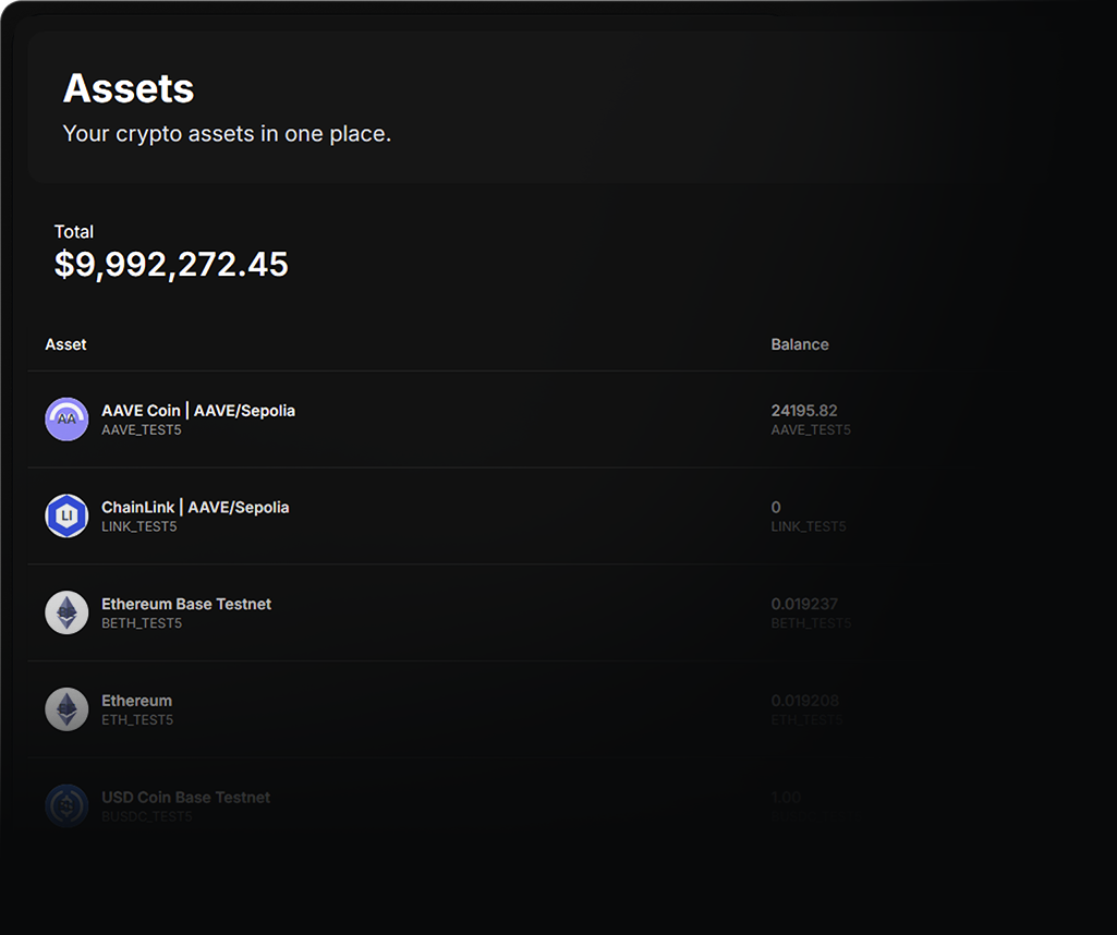 Keep your digital assets safe with institutional-grade protection through Fireblocks. Our custody solution uses multi-layer encryption and secure key management to ensure your funds remain protected at all times.